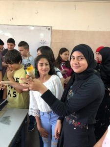 المتطوعة نور مصاروة – إشراقة التربية البيئية تعلم الطالب الثقافة الخضراء للحفاظ على كوكبنا الارض.