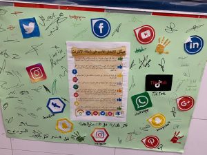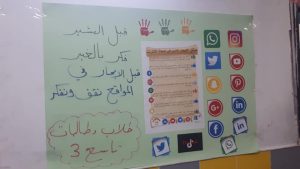 قام مجلس الطلاب ببناء مجسمات ورسومات تعبر عن الإبحار الآمن في الشبكة، بناء فيلم وعرضه لشريحة التاسع، ارشاد وتجهيز الفعاليات في حصص التربية.