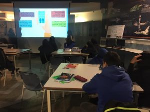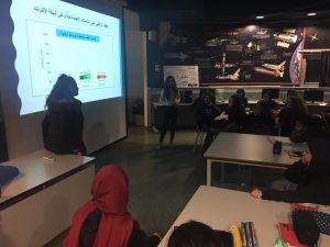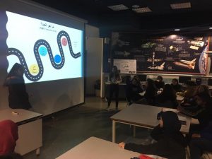 وذلك من خلال عرض فيلم ثلاثي الأبعاد ومن ثم تم الانتقال لمسابقة أسئلة وقد شارك واستمتع الطلاب.