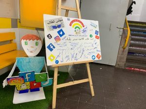 افتتح الأسبوع يوم الاحد بفعاليات شيقة في حصة التربية، في جميع الشرائح السابع، الثامن والتاسع حيث قام الطلاب بكتابة الشعارات وتلصيق الصور التي تعبر عن الإبحار الآمن في الشبكة، ومن ثم لخصوا ميثاق الإبحار الآمن وتم التوقيع عليه من قبل جميع الطلاب والمعلمين. كما وقامت الطالبتان دانيا عازم ولارين جبارة بعرض عارضة لصفوف التواسع: تاسع 3، تاسع 4، تاسع 1، تاسع 8 . كما وعرضت الطالبتان جنى عازم وروز مدني بعرض عارضة لشريحة الثوامن: ثامن 1، ثامن 4. عبرت العارضة عن حسنات ومخاطر الشبكة، معطيات ابحار الطلاب في الشبكة، الاستخدامات الأكثر شيوعا في الشبكة، الرسائل التي نرغب بايصالها للطلاب.