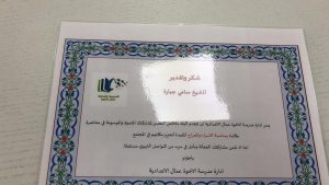 وفي نهاية اليوم شكرت مديرة المدرسة نسرين حاج يحيى الشيخ سامي جبارة، الشيخ بلال ناشف، الشيخ محمد حاج يحيى. وقدمت لهم شهادات تقدير.