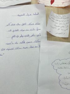 قامت المديرة بتوزيع الورود على طاقم المعلمين كتبت عليها