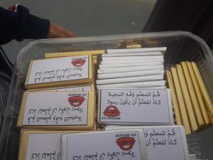 قامت المديرة بتوزيع الورود على طاقم المعلمين كتبت عليها