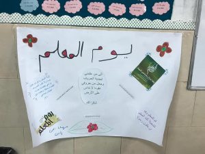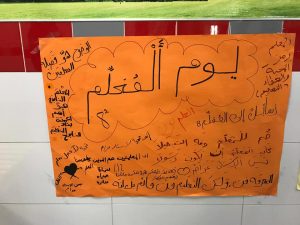 افتتحت مديرة المدرسة نسرين حاج يحيى "يوم المعلم" بشكر وتقدير لطاقم معلمي الاخوة بالنشرة الصباحية وتلتها كلمة رئيسة مجلس الطلاب لقاء جبارة.
