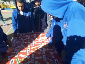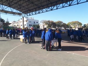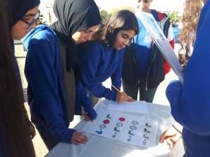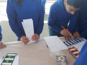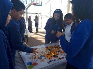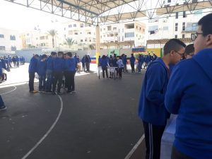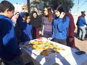 تم تقسيم طلاب صفوف السابع الى مجموعات وكل مجموعة مرت على 5 محطات في ساحة المدرسة،استمر زمن كل محطة 17 دقيقة.