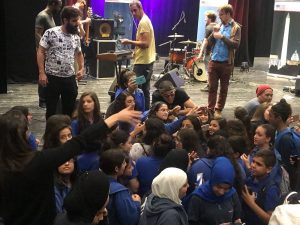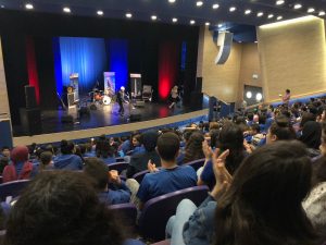 وضمن اطار مشروع let’s Talk تم دعوه طلاب مدرستنا من قبل السفاره الامريكية للمشاركة بحضور حفلة لفرقة Dangerflow لمده ساعه ونصف في مدينه نتانيا بحضور السفير الامريكي